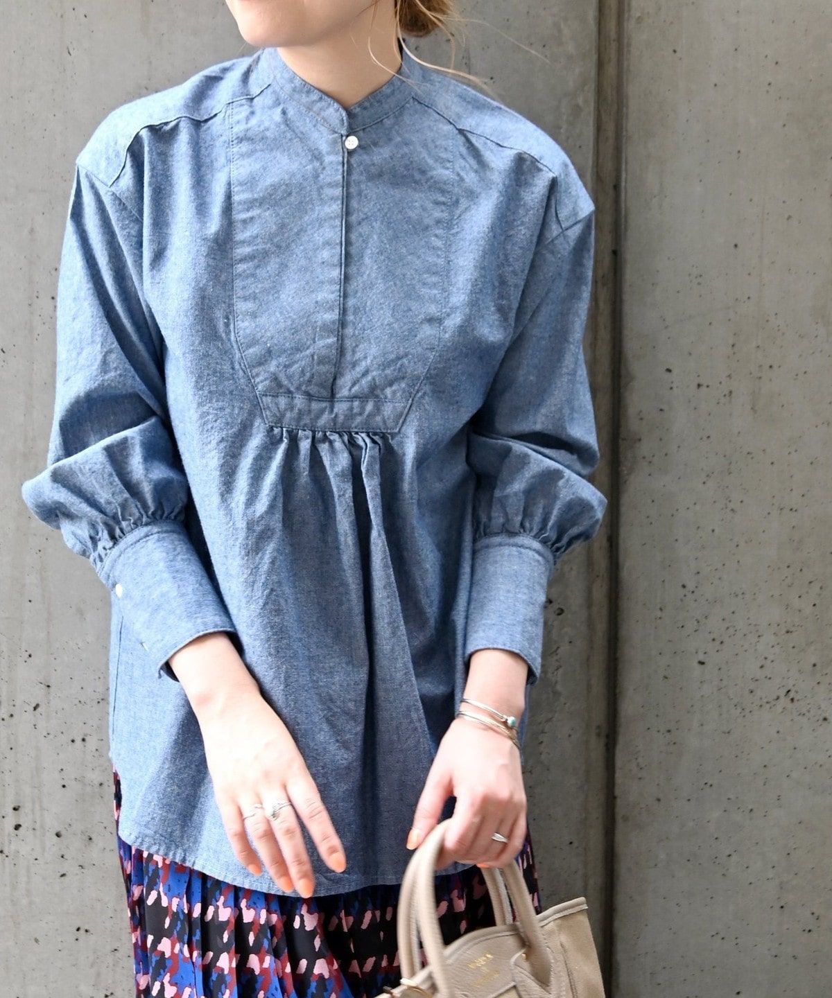 | 《予約》SHIPS any:〈ウォッシャブル〉ダンガリー ヨーク フリル ブラウス ¥9,460(税込) |