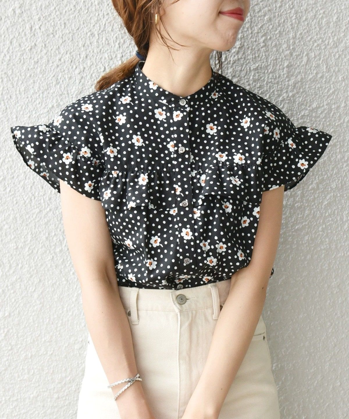 《予約》SHIPS any:〈ウォッシャブル〉Longchamp ドット フラワー ヨーク フリル ブラウス ¥9,900(税込) |