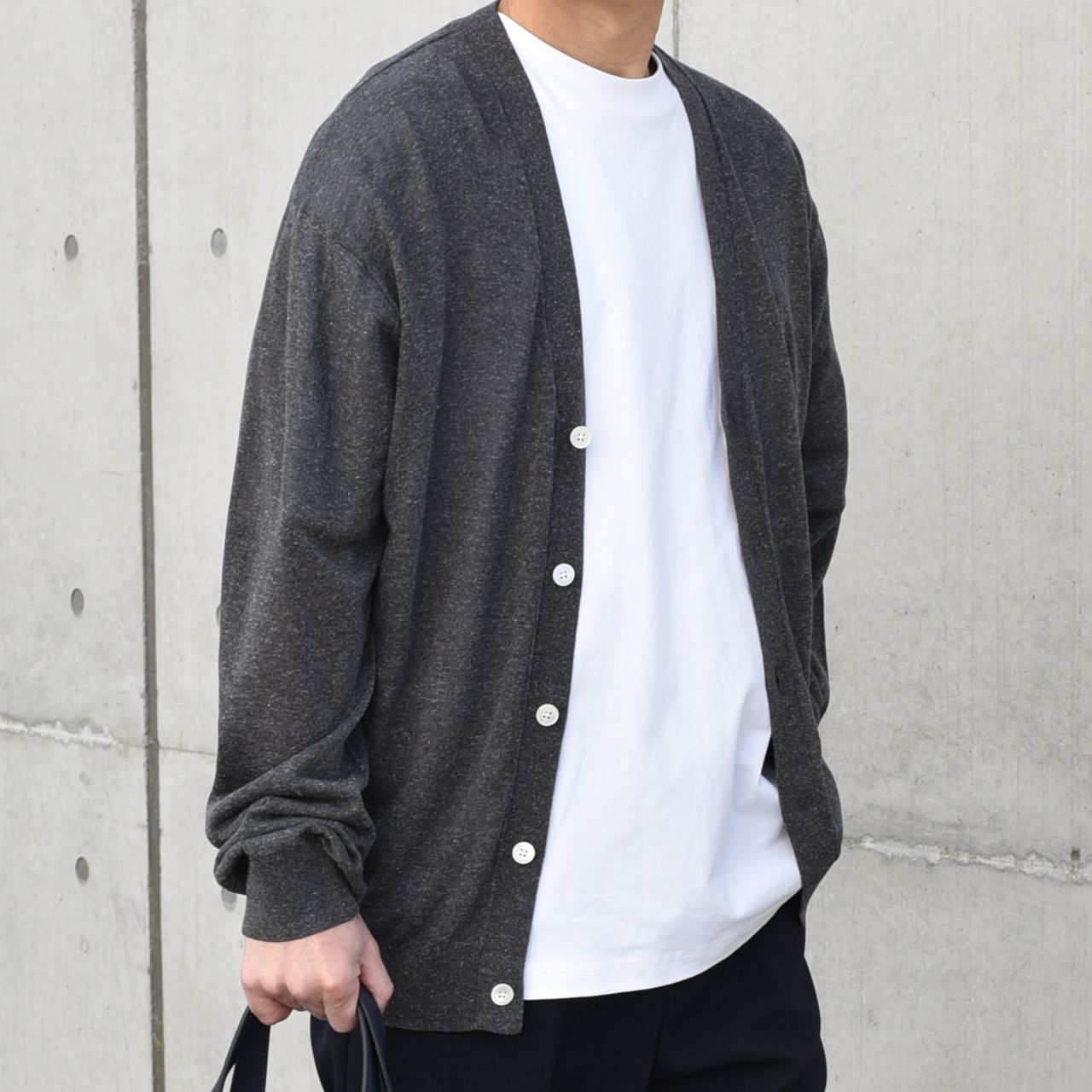 ドライタッチなリネンミックス素材を使った肌離れもいい持ち運びが楽なカーディガンです。