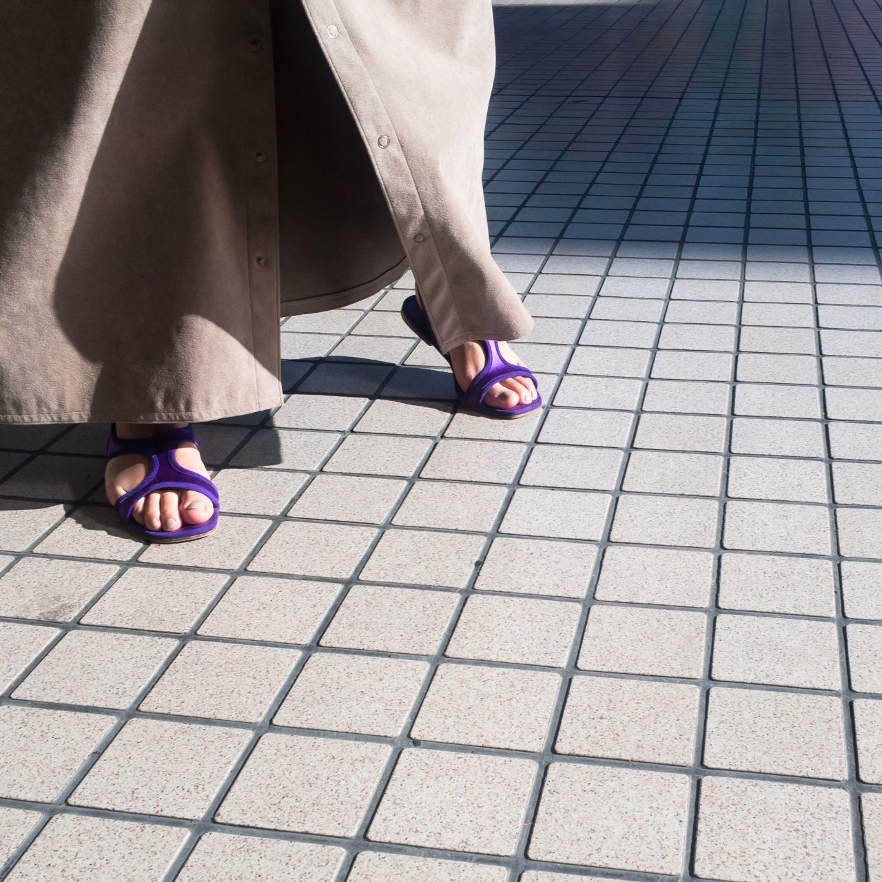 フラットサンダルでもキレイめな雰囲気で