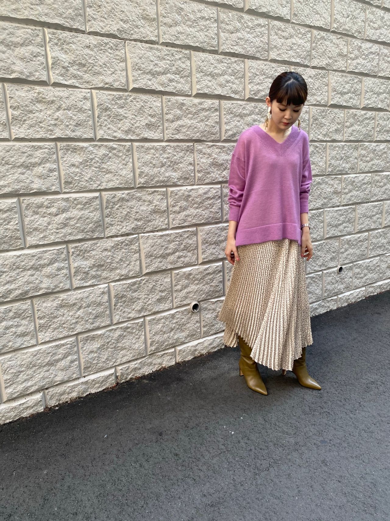 このようにプリーツスカートと女性らしく合わせても素敵ですね!