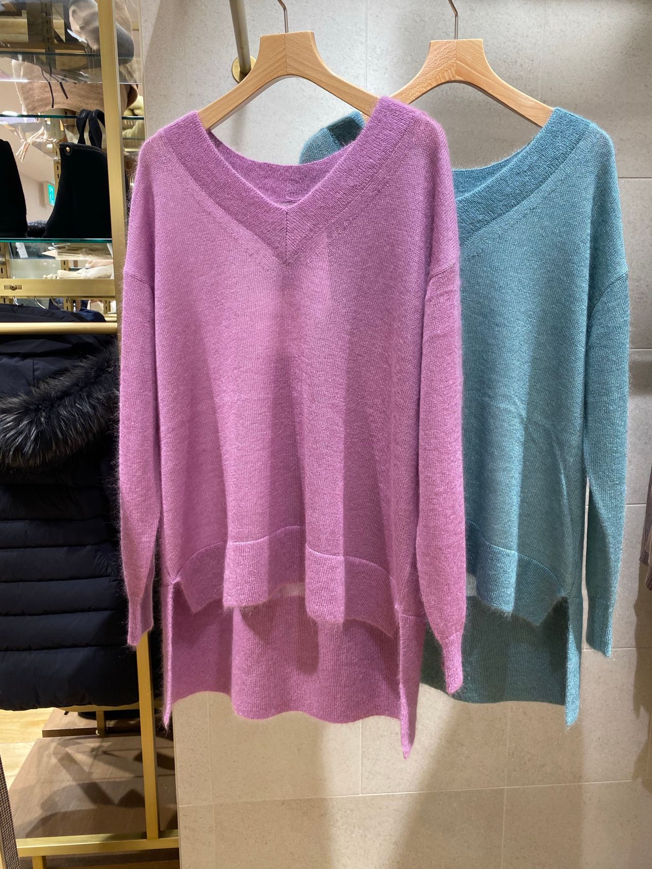 素材はモヘアとシルクでふわっとした風合いと軽い着心地が特徴です!