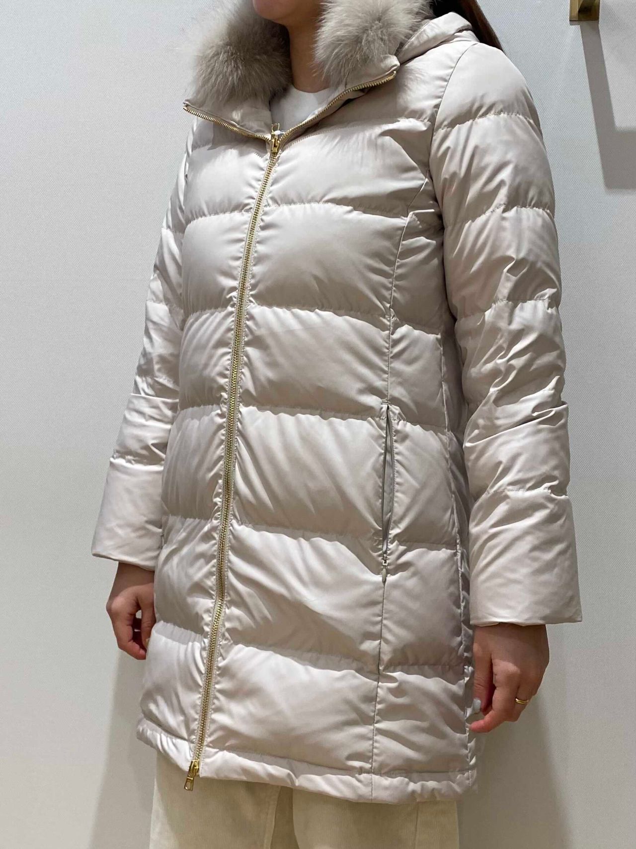 腰まですっぽりと隠れる長さのファー付きダウンです。
