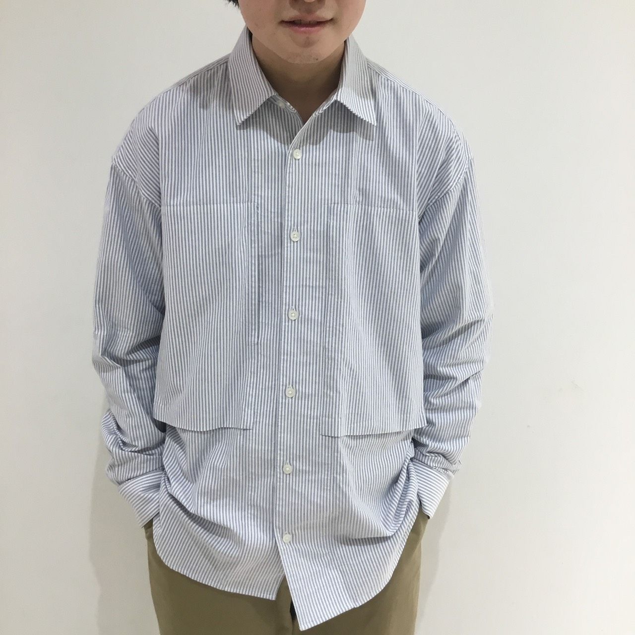 こちらのシャツは、ややゆったりめのシルエットになっています。