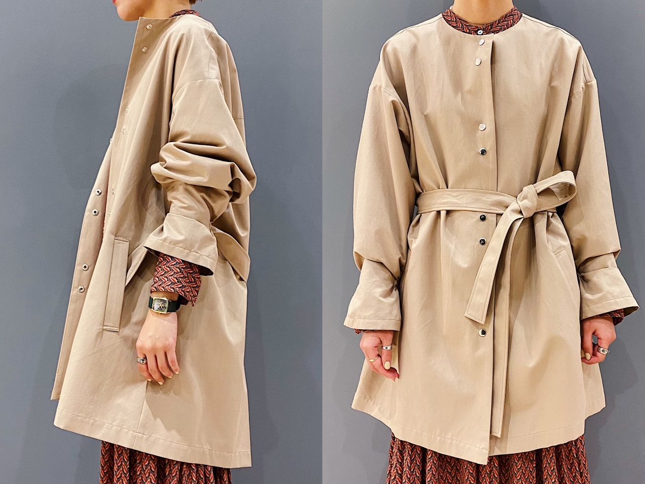 ウエストを絞らずに羽織っても、