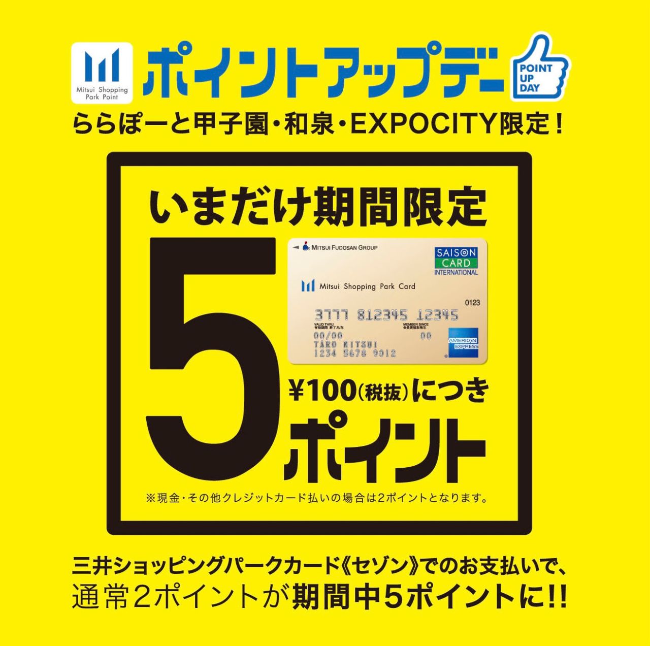 エキスポシティ全館で使える三井住友カードのポイントUPも。