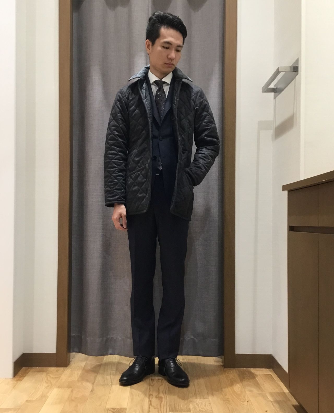 ただこちらのレイドンは着丈が若干短く、ビジネスで着用しようとするとジャケットの裾が出てしまうこともありました。