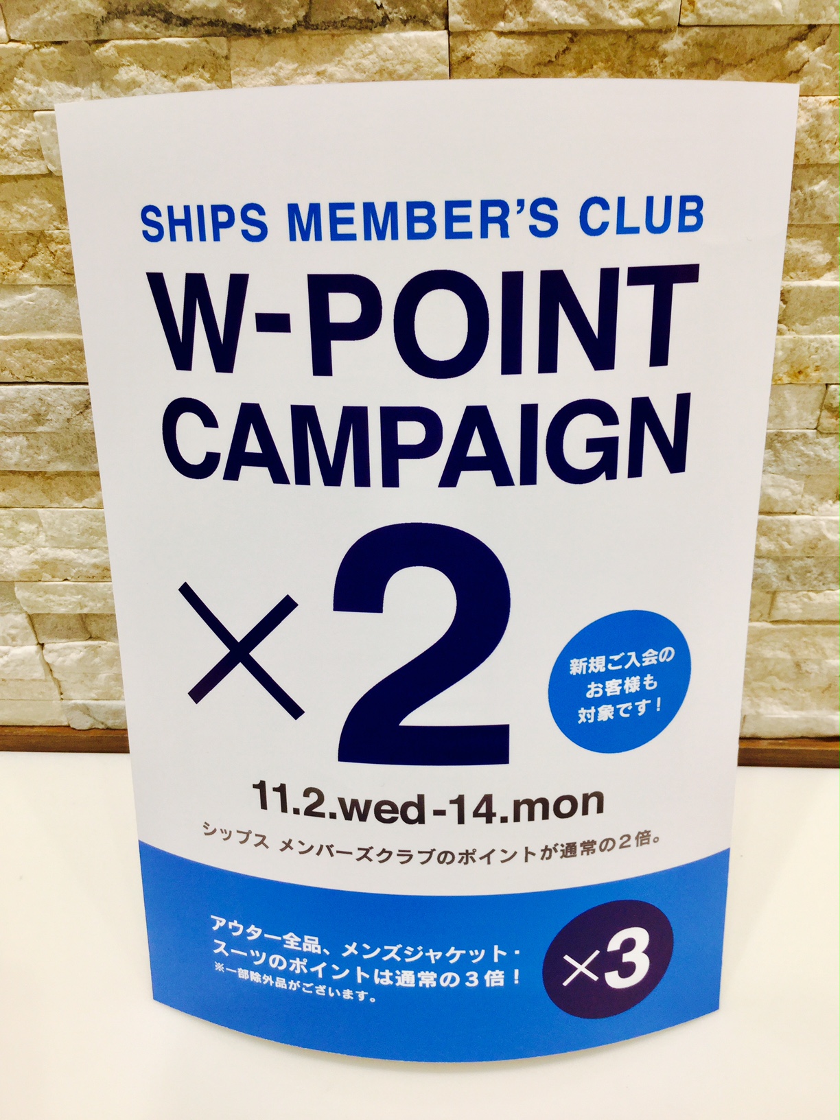 SHIPS MENBERS CLUB W-POINT CAMPAIGNも11/14(月)まで開催しております。