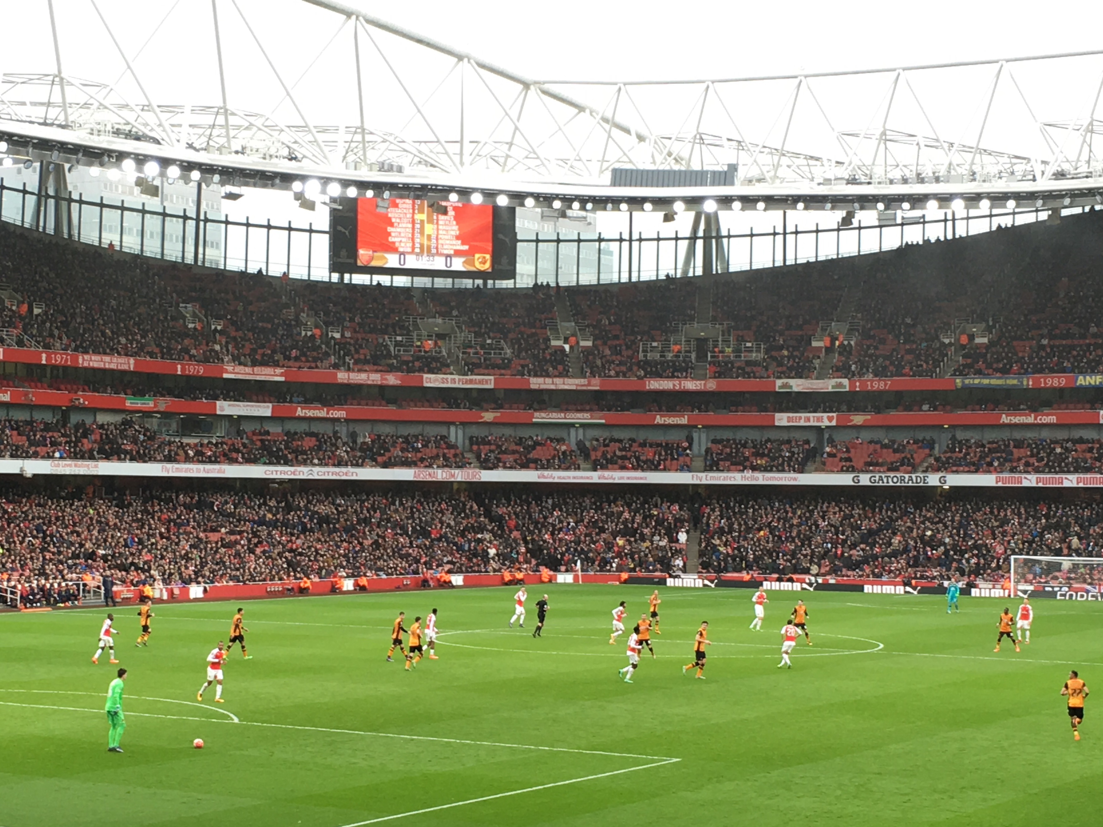 サッカーの名門アーセナルの試合で興奮し、