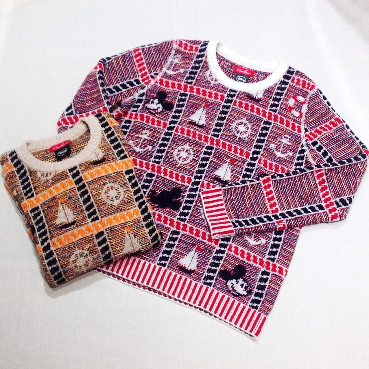 色彩豊かなニットツイードが特徴のブランド【Choohem】による ミッキーのニット。SHIPS = 船 というだけあり、マリンをイメージしたデザインになっております。 〈CODE〉316-06-0062 ¥29,400 〈COLOR〉RED,ORANGE