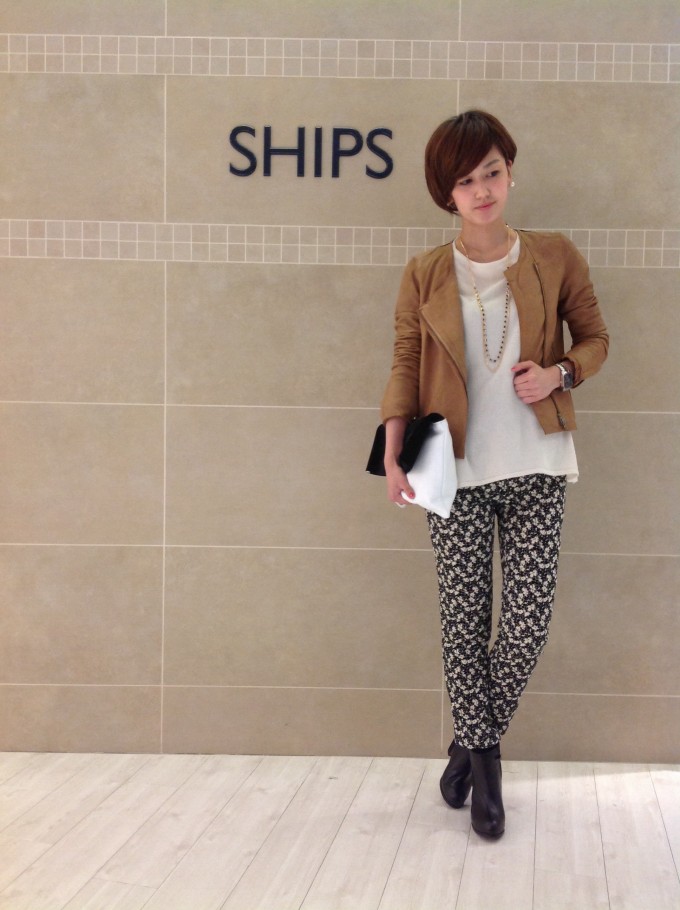 春夏シーズンから継続でトレンドの柄のパンツを合わせて今年らしい印象に(^○^)♪♪こちらはコーデュロイ素材で、伸縮性もございますので履きやすいですよ。 (OUTER) 型番:314-04-0074 プライス:¥44,100 (PANTS) 型番:313-15-0073 プライス:¥12,600 (NECKLACE) 型番:319-24-0129 プライス:¥5,985 (SHOES) 型番:315-24-0052 プライス:¥31,500 (BAG) 型番:310-01-1945 プライス:¥14,700 続いてこちらはライダースタイプ☆★