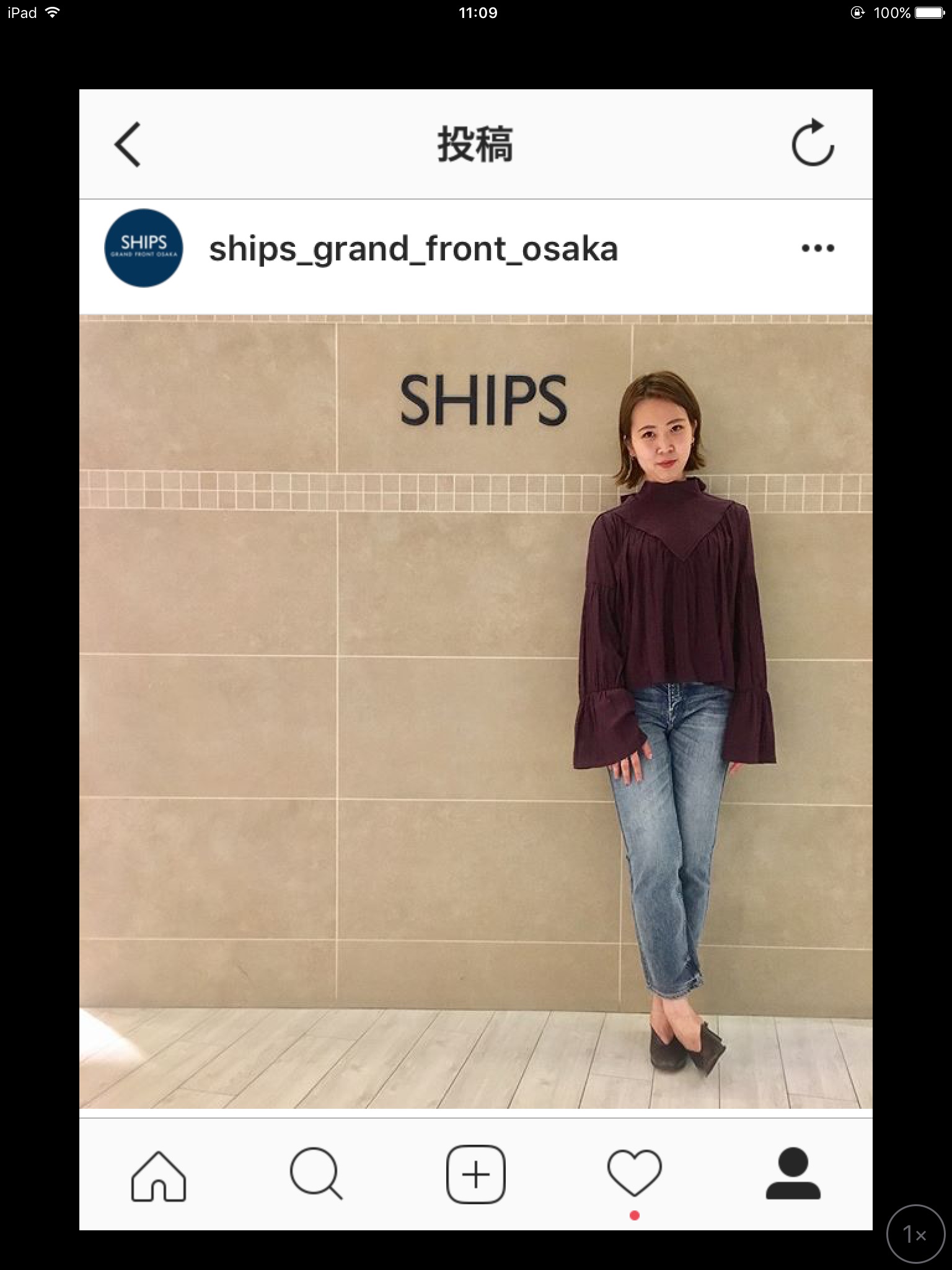 ELINの新作を着用したコーディネートや、 この秋冬おすすめのコーディネートも インスタグラム @ships_grand_front_osaka からもご覧頂けます。 是非、皆様フォローしてくださいね 皆様のご来店スタッフ一同お待ち申し上げます。
