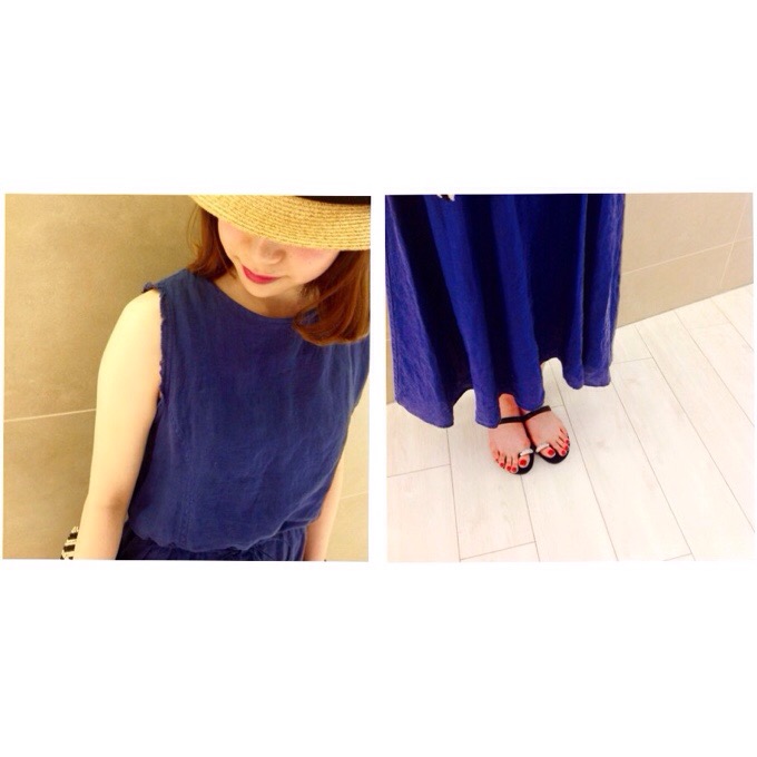 Hat: Ships ¥8500 (+TAX) One piece: Ships ¥16000 (+TAX) Clutch bag: MOYNA ¥27000 (+TAX) Sandal: nacer de pie for ships ¥13000 (+TAX)