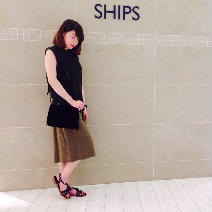 Gaucho pants: Ships ¥13000 (+TAX) Knit vest: Ships ¥11000 (+TAX) N/S shirt: illiann lobe ¥16000 (+TAX) Fringe bag: Ships ¥18000 (+TAX) Sandal: sante borella ¥40000 (+TAX)