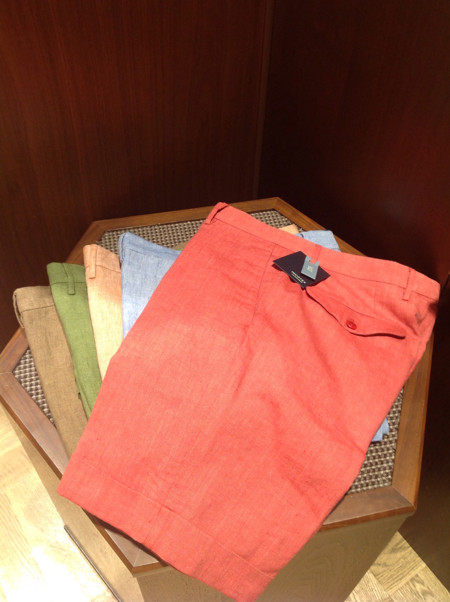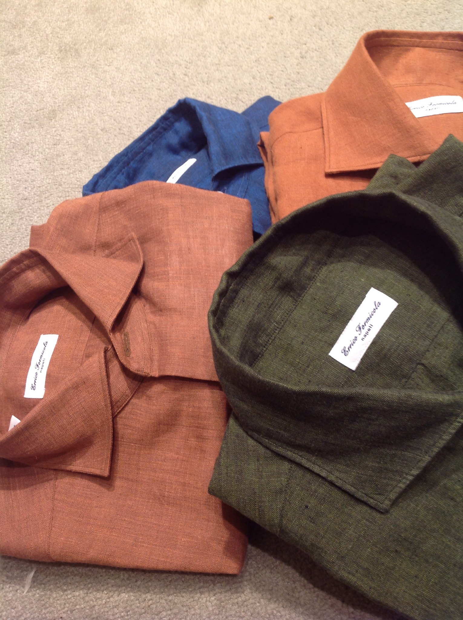 リネンの生地のスーツ、麻混のシャツにネクタイと