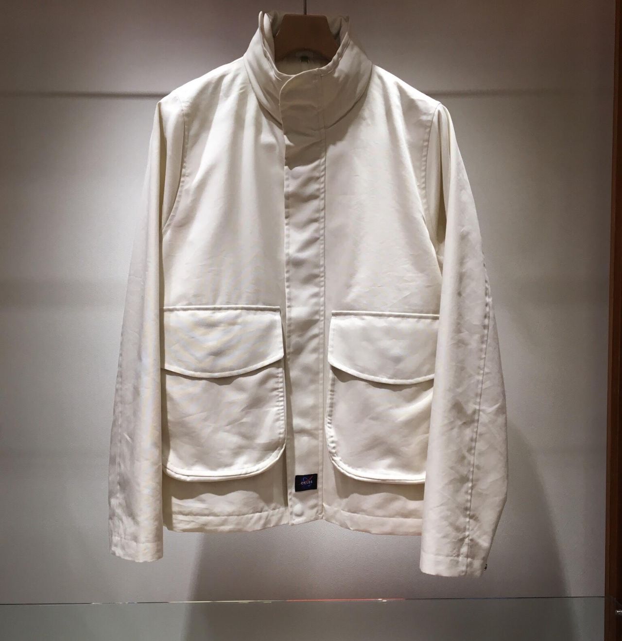 前身頃のポケットやエルボーパッチにさり気なく配された同色のステッチ