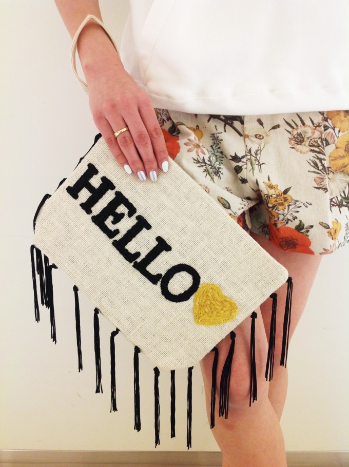 インパクト大のロゴとMOYNAでは珍しいフリンジがポイントのクラッチバッグ。