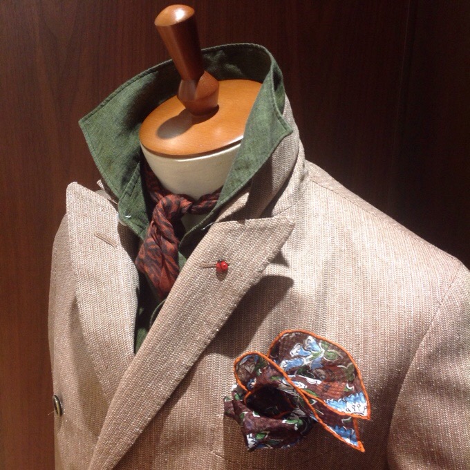 麻混のジャケットもあります。 気心地は柔らかいですが形はフォーマル、 そんな気分の貴方に。