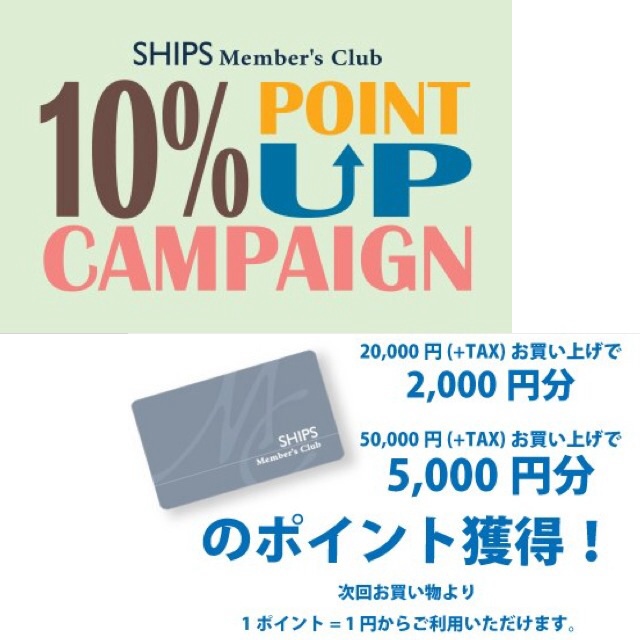 「シップスメンバーズクラブ10%ポイントアップキャンペーン」を開催いたします。