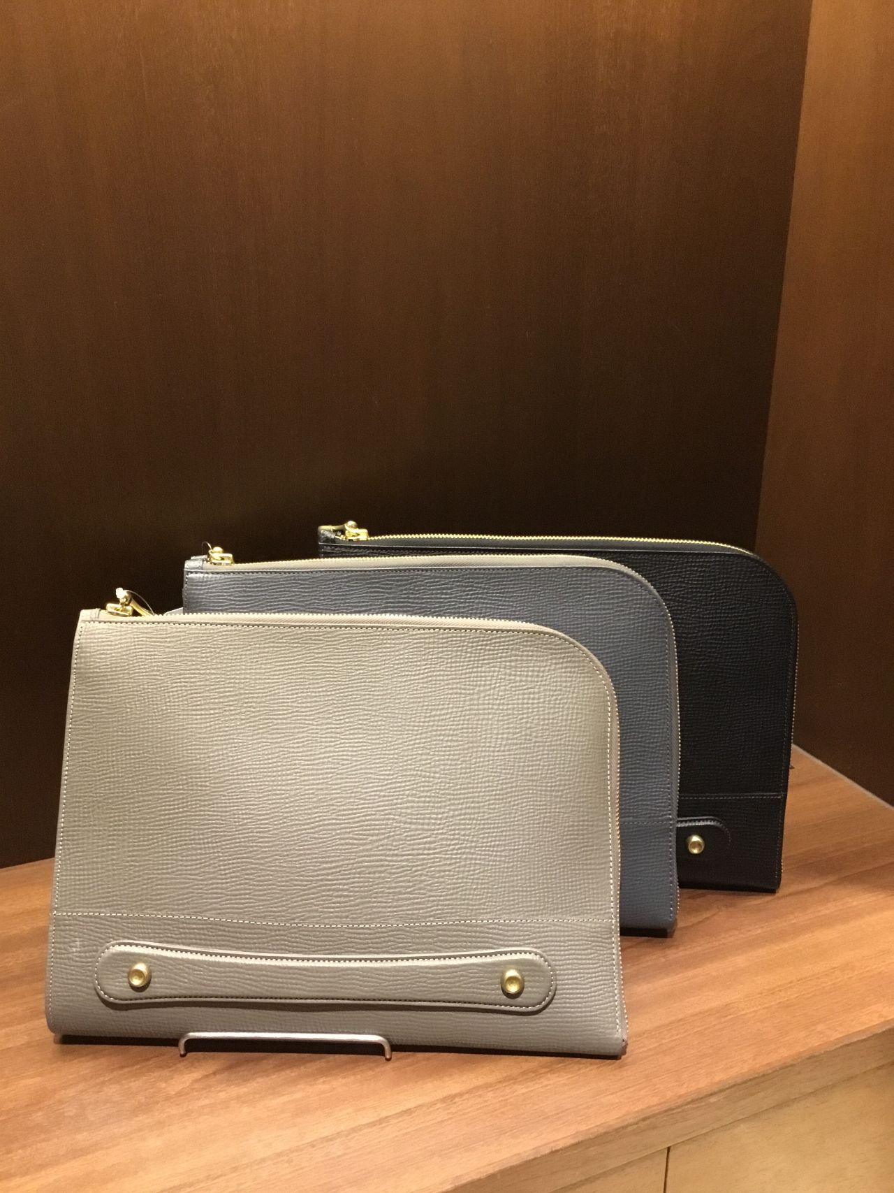 「そちらはトレンドをふまえたクラッチバッグですね。大きめな作りなのでタブレットなどもすっきり収納してくれます。今日のカジュアルな格好にもハマるかなと思いますよ。」