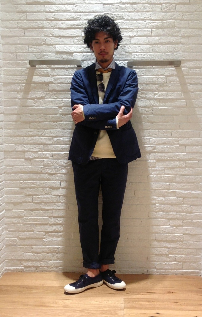 ポプリン素材にパッチポケット仕様。セットアップながらも、程よい抜け感を楽しめる1着。 ・JKT [CODE] 117-01-2019 [PRICE] ¥69,000+(tax) ・PANTS [CODE] 113-11-3114 [PRICE] ¥37,000+(tax) [ STYLING ] 20140405-223239.jpg
