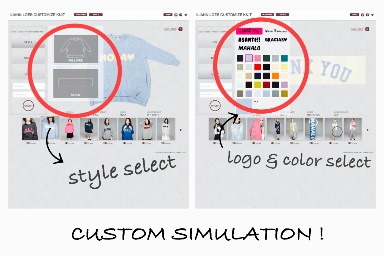 イリアンローヴ カスタマイズニットのシミュレーションを WEBサイトよりお試しいただけます。