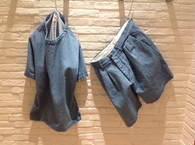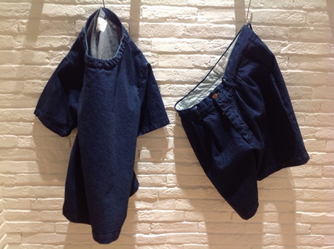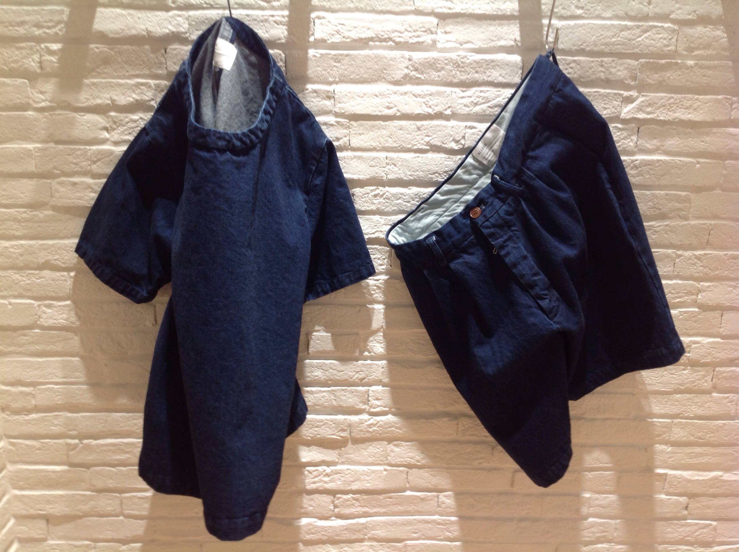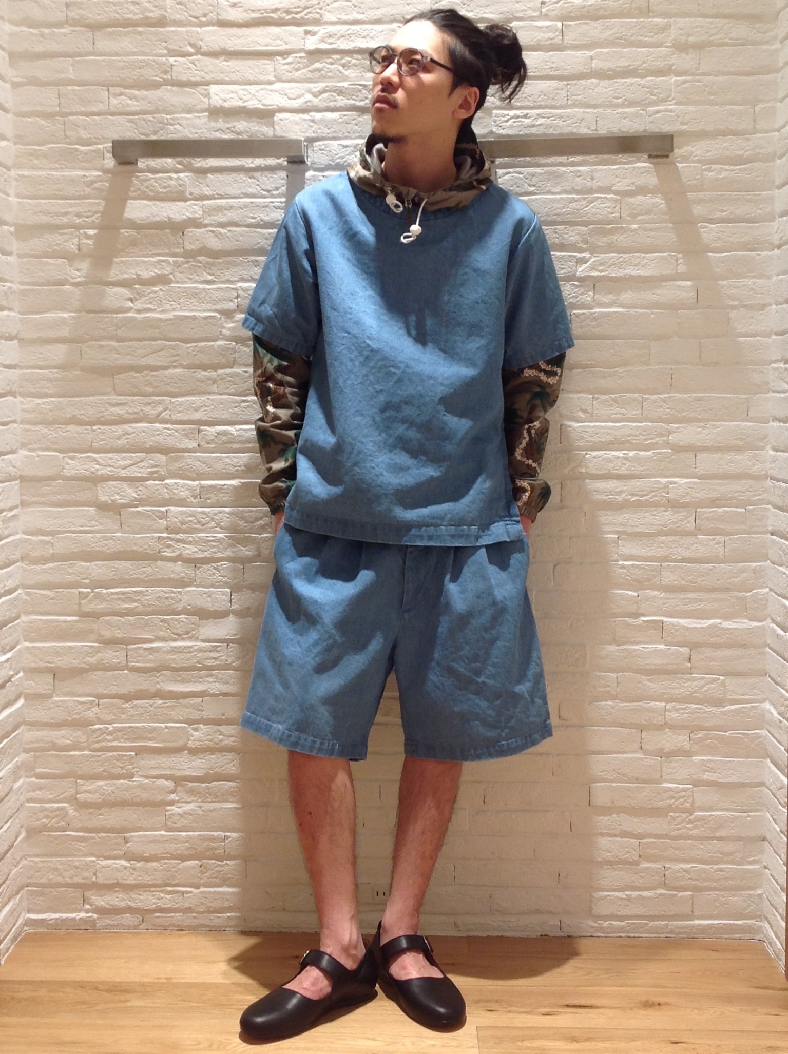 ALLEGE: DENIM PULLOVER [CODE] 121-51-0037 [PRICE] ¥25,000+(tax) [COLOR] BLUE ALLEGE: DENIM WIDE SHORTS [CODE] 123-31-0067 [PRICE] ¥19,000+(tax)