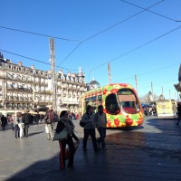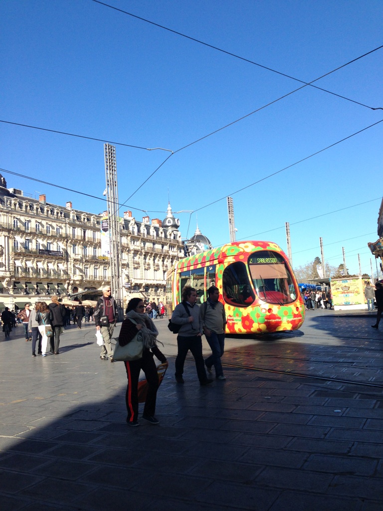 建物にも歴史を感じます。駅前を走っているトラム(路面電車)も可愛い。ファーブル美術館や世界遺産の水道橋などを見学しながら、街並みをぐるっと一周してホテルへ。