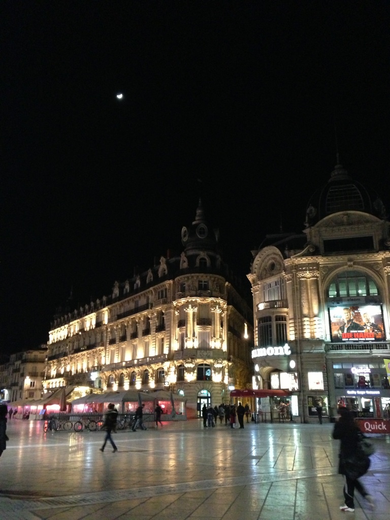 モンペリエの中心地、コメディ広場。オペラ座やメリーゴーランドもあり、おとぎの国みたいです。色々な店も多く、夜のライトアップは、とにかく光のセンスが建物の白い色に対する光の色と量が計算されているんだなあと感心してしまいました。この辺のセンスは日本やアジアとは違いますね。色々なレストランを下見しつつ、並ばない程度に混んでいるレストランにしました。食事は最後のSETEという近くにある島で魚介を食べた以外は、ほぼ肉メインのフランス料理を堪能しました。