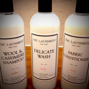 こんにちは♪ WOMENS担当の国広です♪ 早いもので今年も残り二ヶ月・・・ 本格的に冬到来ですね!! 今回は!! 国広がご自宅で簡単に出来る、お洋服のホームケアをご紹介いたします^^ しまい込んでいたニットやストールを、簡単にご自宅でお洗濯できちゃいます♪♪ 少し前のお話にはなりますが、先日メーカーの方をお招きし 9月よりアミュプラザ博多店でもお取り扱いがスタートしたNY発ファブリックケアのスペシャリティブランド 『THE LAUNDRESS』の勉強会を受講しました★ ◆ファッションを愛する人のために ザ・ランドレスでは、日常のお洗濯に使っていただけるベーシックな洗剤や柔軟仕上げ剤はもちろんのこと、 白い衣類用、濃い色の衣類用、ベビー用ファブリックに特化した汚れに強い洗剤やデニム専用洗剤、 本来ドライクリーニングでしか洗うことのできなかったウール・カシミアなどデリケートな素材に特化した洗剤など、 素材に合わせてこだわった製品がラインナップされています。 ファブリックケアに役立つランドリーツール類も充実している他、 しみ抜き剤やリネンウォーターなどファブリックケアをオールラウンドにカバーするアイテムを展開しています。 ◆私たちが暮らす地球のために ザ・ランドレスのデタージェント(洗剤)は、成分に石油系原料を使用せず植物性原料を使用しており、 ファブリックを洗ったあとの排水は自然分解され、100%自然にかえります。 と、このようにホームページにも掲載されていますが、かなりこだわりを持ったブランドです!! お洗濯が難しい素材が増えるこの季節、今までドライクリーニングにばかり頼っていましたが、 自宅で簡単に洗えて、いい香り☆  環境にもお財布にもエコなホームケア、気になりますよね☆★☆ 国広も早速自宅に帰って、クリーニングに出そうと思っていた洋服を洗ってみました。 洗濯機3回分です^^