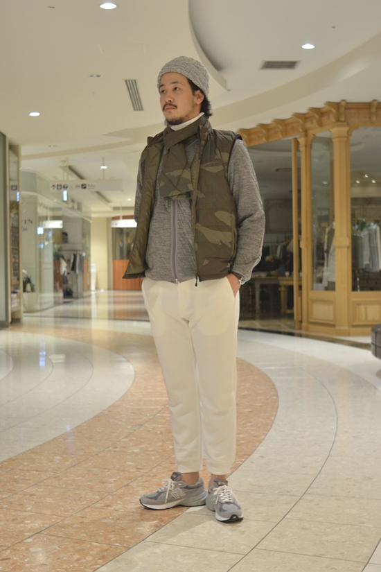 SHIPS ACT: パッカブル ダウン ベスト ¥16000(+TAX) SHIPS ACT: パッカブル ダウン マフラー ¥5500(+TAX) new balance(ニューバランス): M990 GL3 ¥24000(+TAX) THE NORTH FACE PURPLE LABEL (ザ ノース フェイス パープルレーベル) MOUNTAIN SWEAT PANTS ¥18800(+TAX)