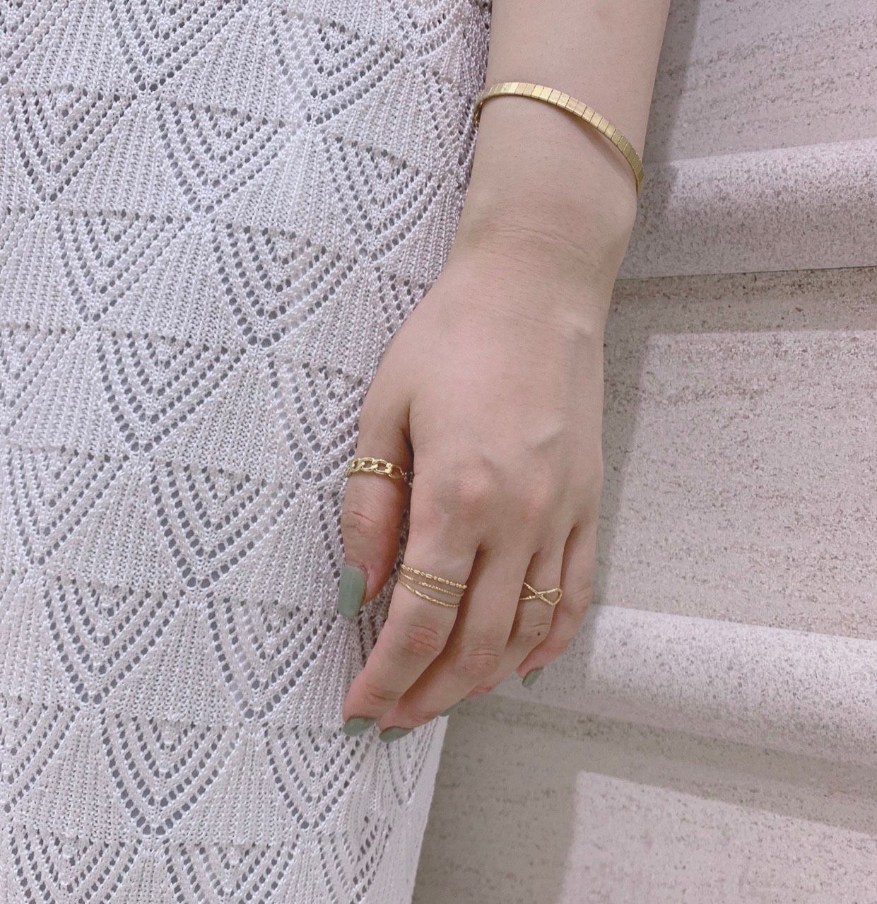 ちなみに、人差し指に付けているリングは3連になってるので