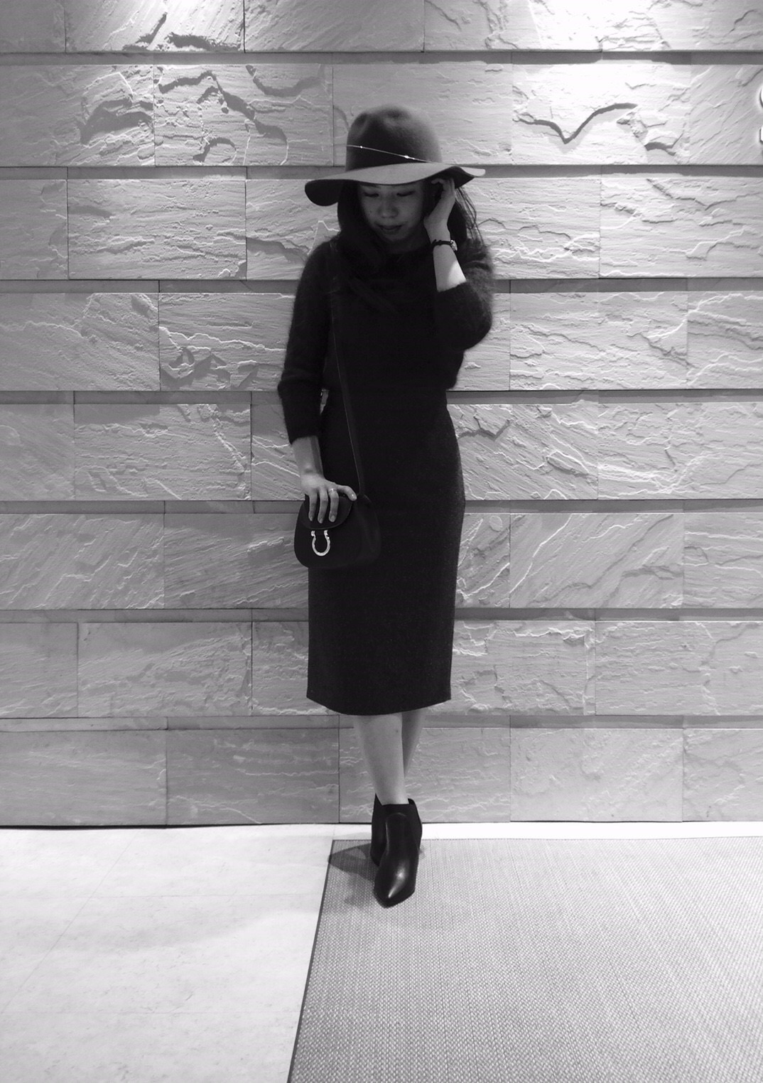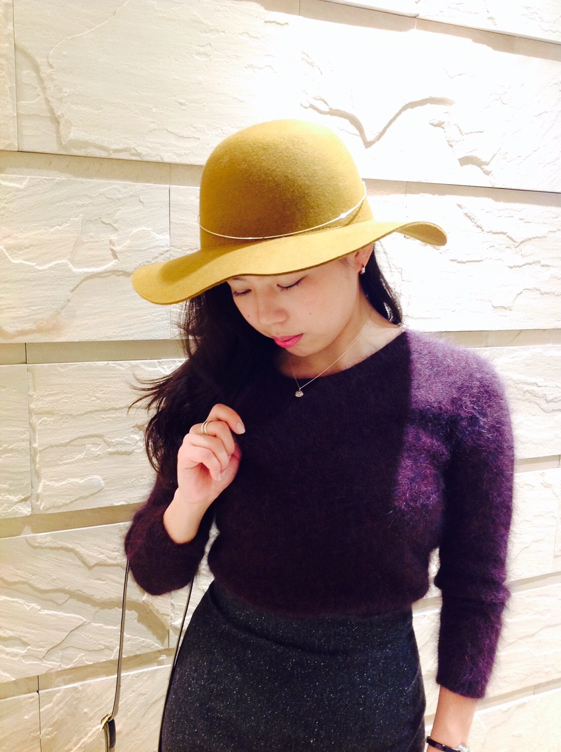 ペンシルスカートはモヘアの可愛らしさと