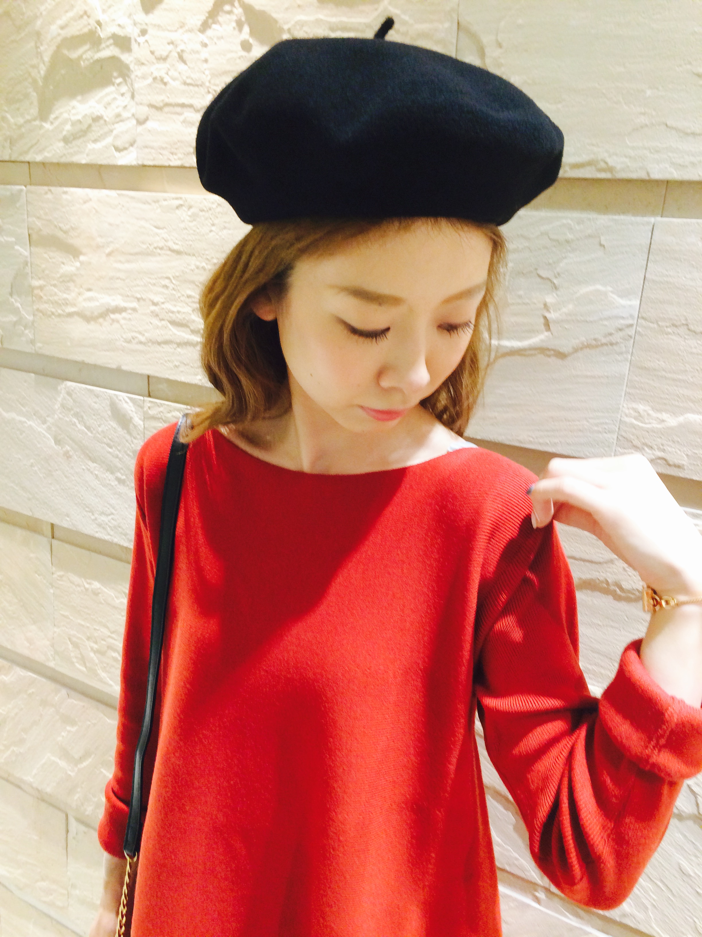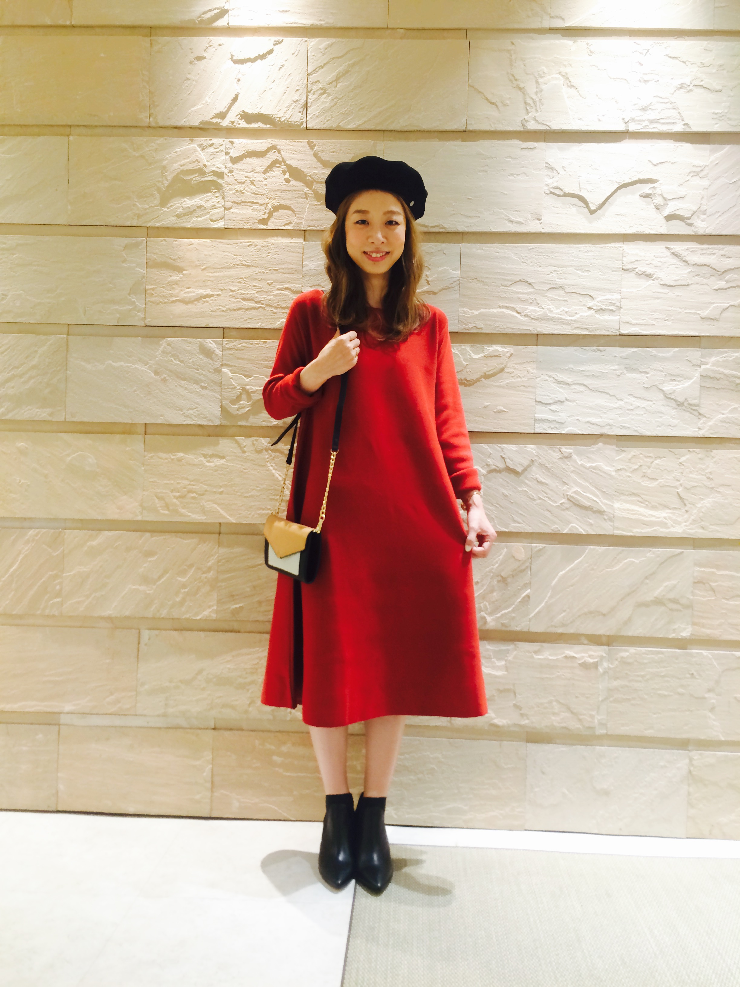 鮮やかな朱色はコートの差し色に良さそう。