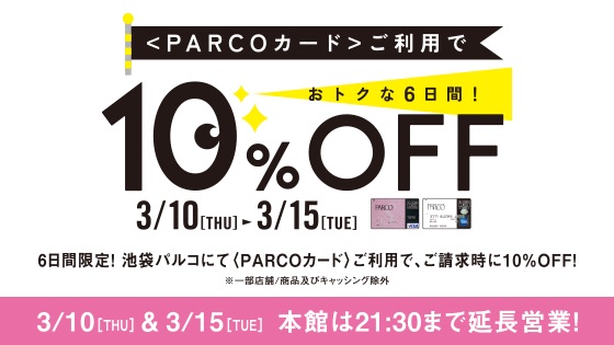 PARCOカードのご利用で、ご請求時10%OFF!!!