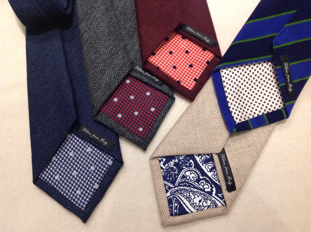 ほっこりウォーム感のあるネクタイです。 裏返すと DX ウールタイ 裏地
