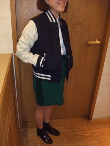 今期は、メンズでも定番人気のあるアメリカ・GB SPORTS社に、 ウィメンズサイズのものをオーダー。 あえて装飾を一切せず、シンプルでプレーンなデザインで勝負です (シンプルなタイプを探すと、女性物では意外と見つかりにくいのでは?)。 お値段は¥36750(TAX IN)。 早速、トラッドスタイル大好きな当店のスタッフIに着てもらいました。