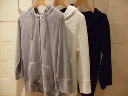 こちらも春夏でご好評いただきました、 SONO MANIA for SHIPSの新作!! みんな大好き、ふわもこパイル地パーカ☆ ← Σ(゚Д゚ノ)ノ 原料・縫製・加工にこだわった一枚のTシャツを作るところからスタートし、 HOME~TOWNのどこでも、24時間着られるものを コンセプトにしているSONO MANIA。 特に冷房のきついこの時期、女性の方には心強い味方なんじゃないでしょーか。 ビーチやプールでも使えますね~♪ つづいていきますよ~