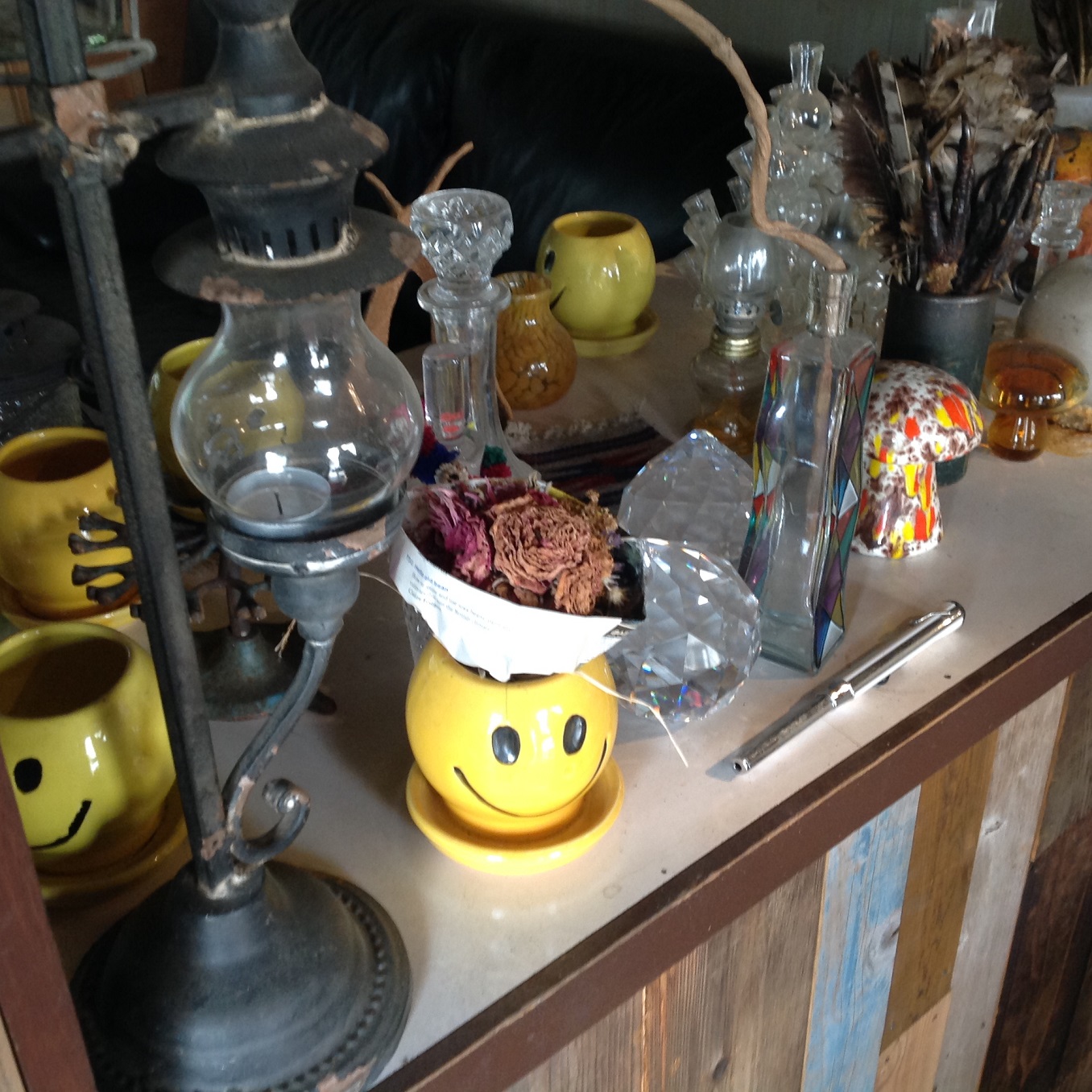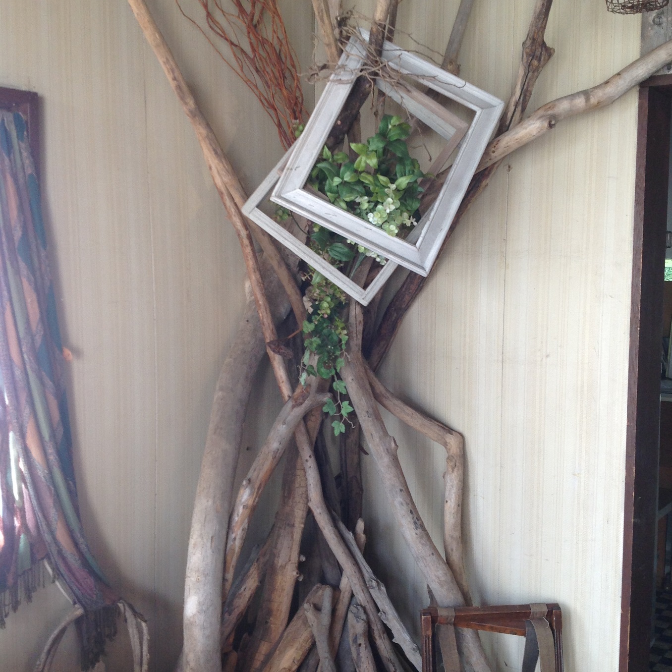 中には色んなものがありました。ミシンや流木、写真やアート画、植物に…
