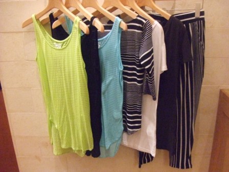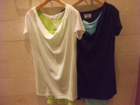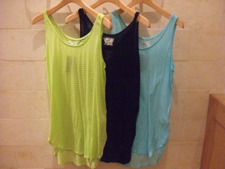 まずは夏らしいカラーが目を惹くノースリーブタイプから。 イエローグリーンとスカイブルーは、 リネンのシャツのインナーなんかでアクセント使いにもよさそうですね。 Tシャツとレイヤードするとこんな感じです。