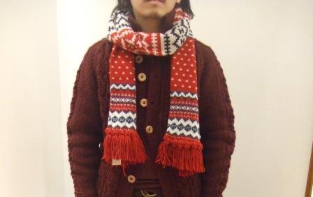 ポップな色柄ものは、使いづらいというイメージがあるかもしれませんが、 他のアイテムをシンプルに無地でまとめてしまえば、 ぜ~んぜん難しくありません。 日頃、びしっとスーツを着込んで、 バリバリ仕事をこなしているみなさんが、 ふと休日にこんなユーモアのあるマフラーをしていたら・・・ はい、いわゆる「ギャップ」ってやつですね。 えーと、これ以上はあえて言いません。 お察しください。笑 メンズウェアはどうしてもストイックだったり、ラギッドだったり、 男クサ~イ感じが好まれる傾向にあるみたいですが、 もっといろんな色や柄を使ってほしい、という個人的には思っております。 同じ思いを抱かれておられるミナサマ、 たまには違うスタイルにチャレンジしてみたいと思っておられるミナサマ、 今年の冬は、こんなポップなマフラー、いかがでしょうか?