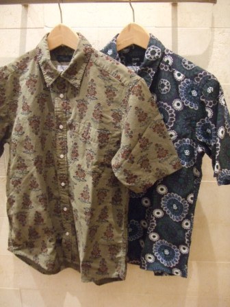 インドにおいて、宗教的な意味で重用されることの多いハスをモチーフにした 総柄プリントはインパクト抜群。 ですが、ハンドペイントのようなかすれた風合いで、 色味も落ち着いていますので意外と着やすいですよ~♪ こちらはレギュラーカラーを採用。 最近は夏のシャツというと七分袖がメインストリームですが、 個人的に去年ぐらいから半袖がなんだか気になってきています。 長袖をまくりあげるのも好きなんですが、 ボタンを上まで留めて、半袖をさらにちょっとだけ ロールアップして着るのが気分です。 暑くなるとどうしても休日にもTシャツ一枚になりがちですが、 暑い夏・まぶしい太陽の下だからこそ映える、インド製のシャツ。 一枚、夏のお供にいかがでしょうか? 以上、前回のブログが変なテンションだったので、 たまには落ち着いて書いてみたカネコでした。