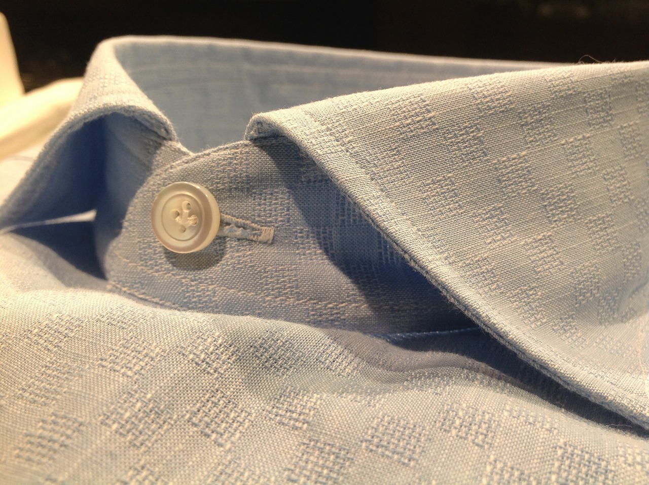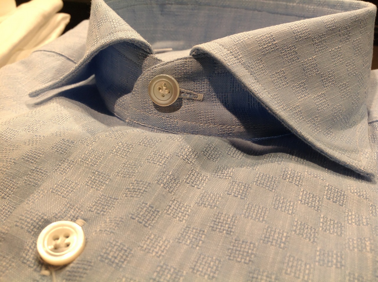 素材も素敵なんですが、 このシャツ、ナポリという南イタリアの町で作られてまして、 そのナポリという場所は昔から仕立て屋が盛んな町でもあります。 このシャツはもちろん既製品ですが、ちょこっとナポリ魂を垣間見ることが出来ます。 どこでしょうか?