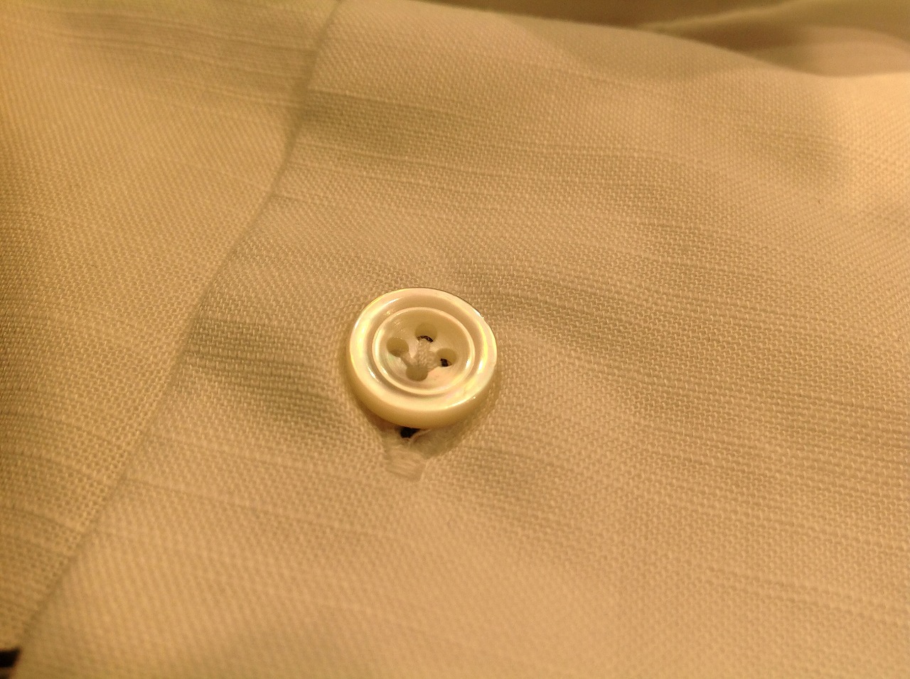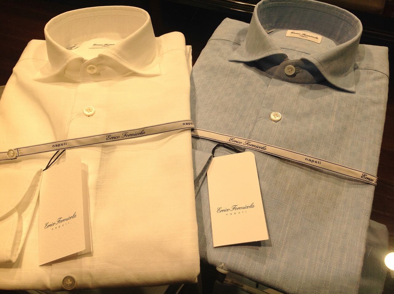 ほら、ボタンを留めている糸が! 鳥足留めに! おお!鳥の足の形の様に!! 。。。 ん?なにそれ?? となる方もおられると思いますが、 ボタンは普通クロス付けで機械にて付けられることが多いですが、 この矢印型のような鳥足留めだけは手仕事の証であり、 手でないと付けれないんですよね。 誰がそこまで見てんねん!! って話ですが。(笑) お仕立ての町のシャツならではの拘り。 こんなところにナポリ魂を感じれるなんて、素敵じゃないですか。 お値段もメイドインイタリーのシャツにしてはかなり良心的。 22200円(+TAX)なんです。 ぜひ、ご来店の際は手に取ってご覧下さい。 では、またのご来店お待ちしております。 今井