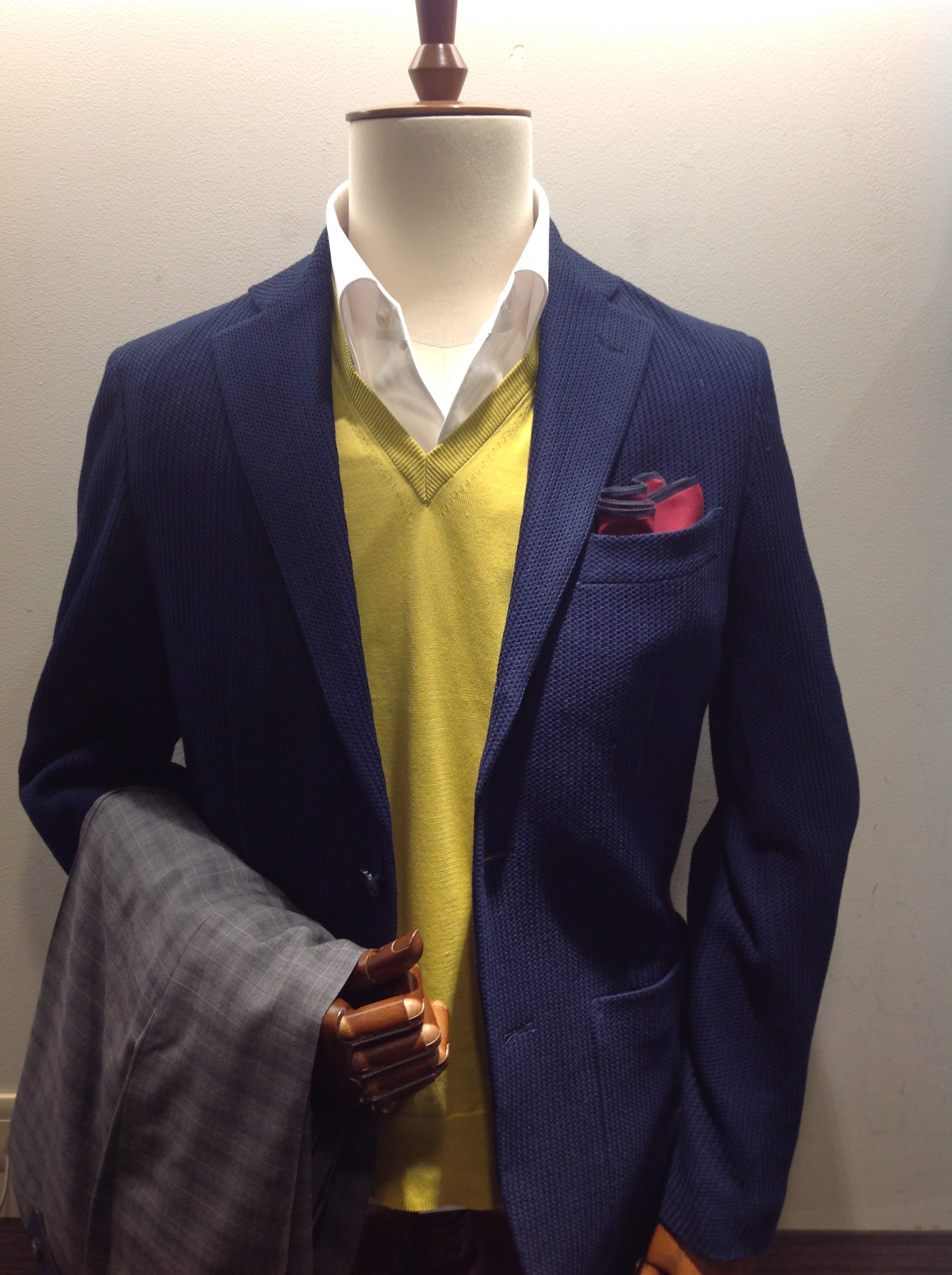 ジャージージャガードジャケット 型番:117-01-2166 ¥35,000(+TAX) ビジネスカジュアルで定番のジャージ素材のジャケットです。 定番となったジャージジャケットが2015年春夏シーズンに再びトップトレンドになっております。 シップスが提案するのはベーシックにビジネスで着用できるネイビージャケット、春夏らしい明るめのグレーが特徴のジャガードジャケットです。 シルエットは細めスッキリ、ジャージ素材なのでとても軽く、楽に着用して頂け、ジャージならではの通気性の良さも魅力です。