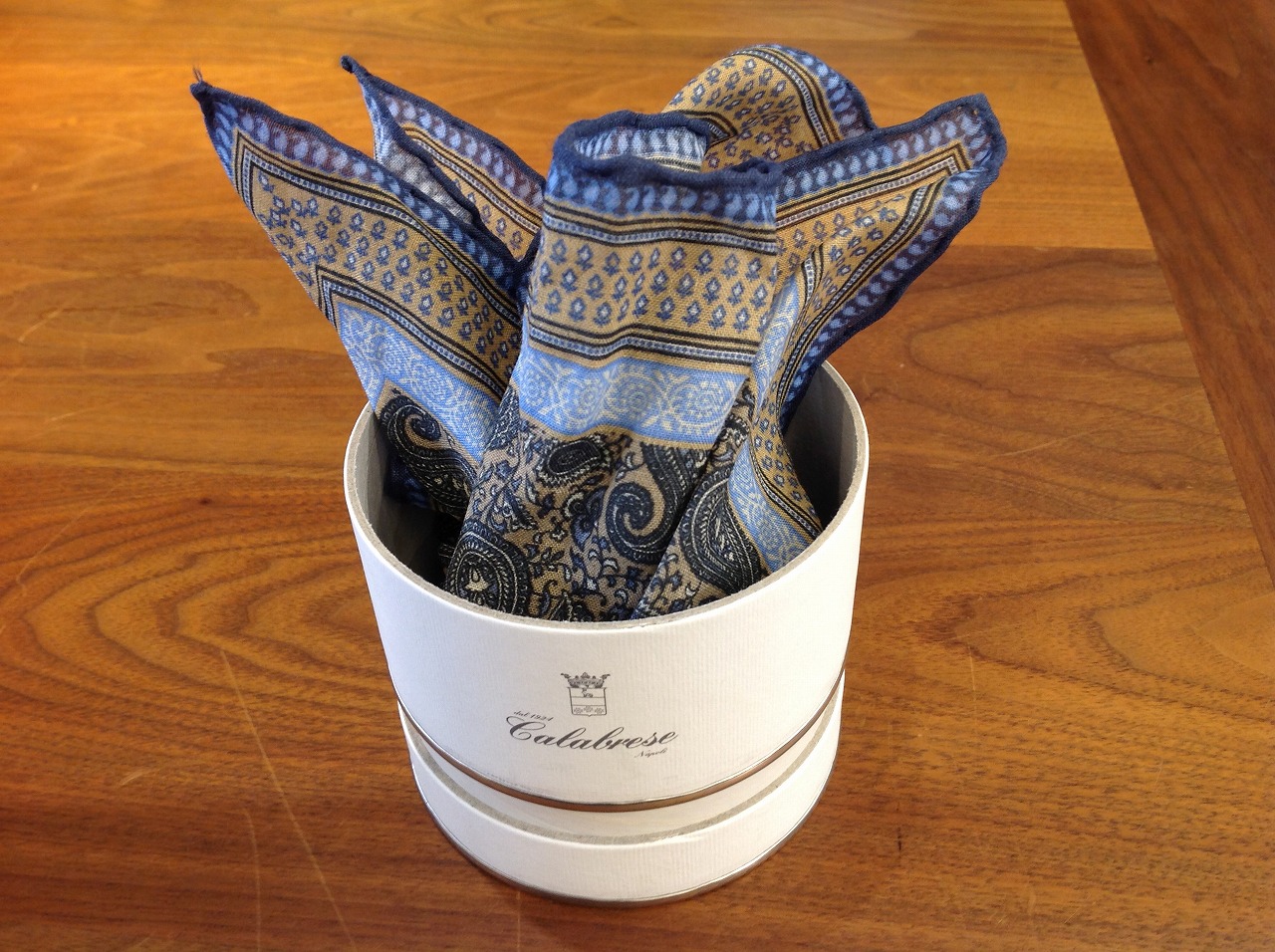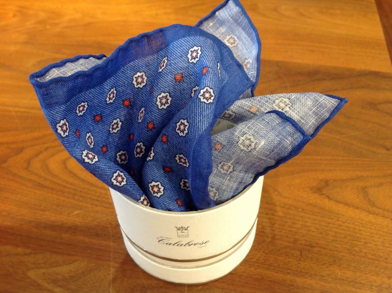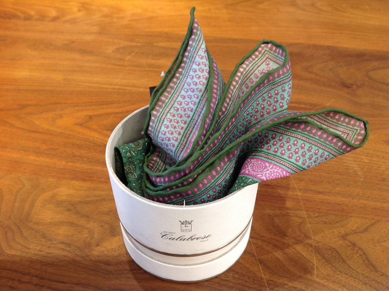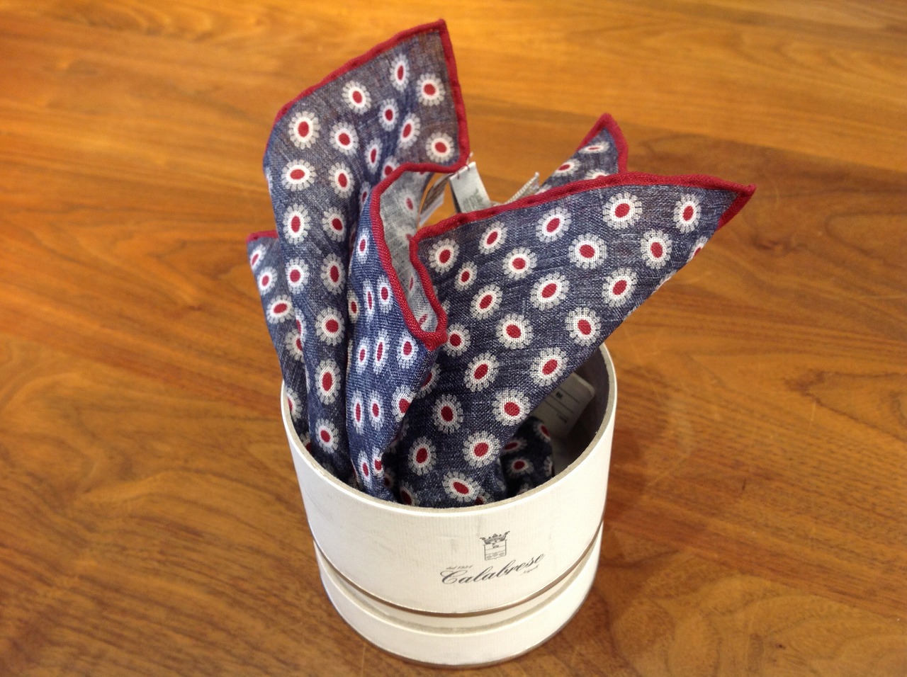 きっと、結果的にはその方が喜ばれるちょうど良いプレセントを探し当てられたんじゃないかな、 そう思っております。 こちら、カラブレーゼのポケットチーフ、おもいっきりオシャレしたい時にお薦めです。
