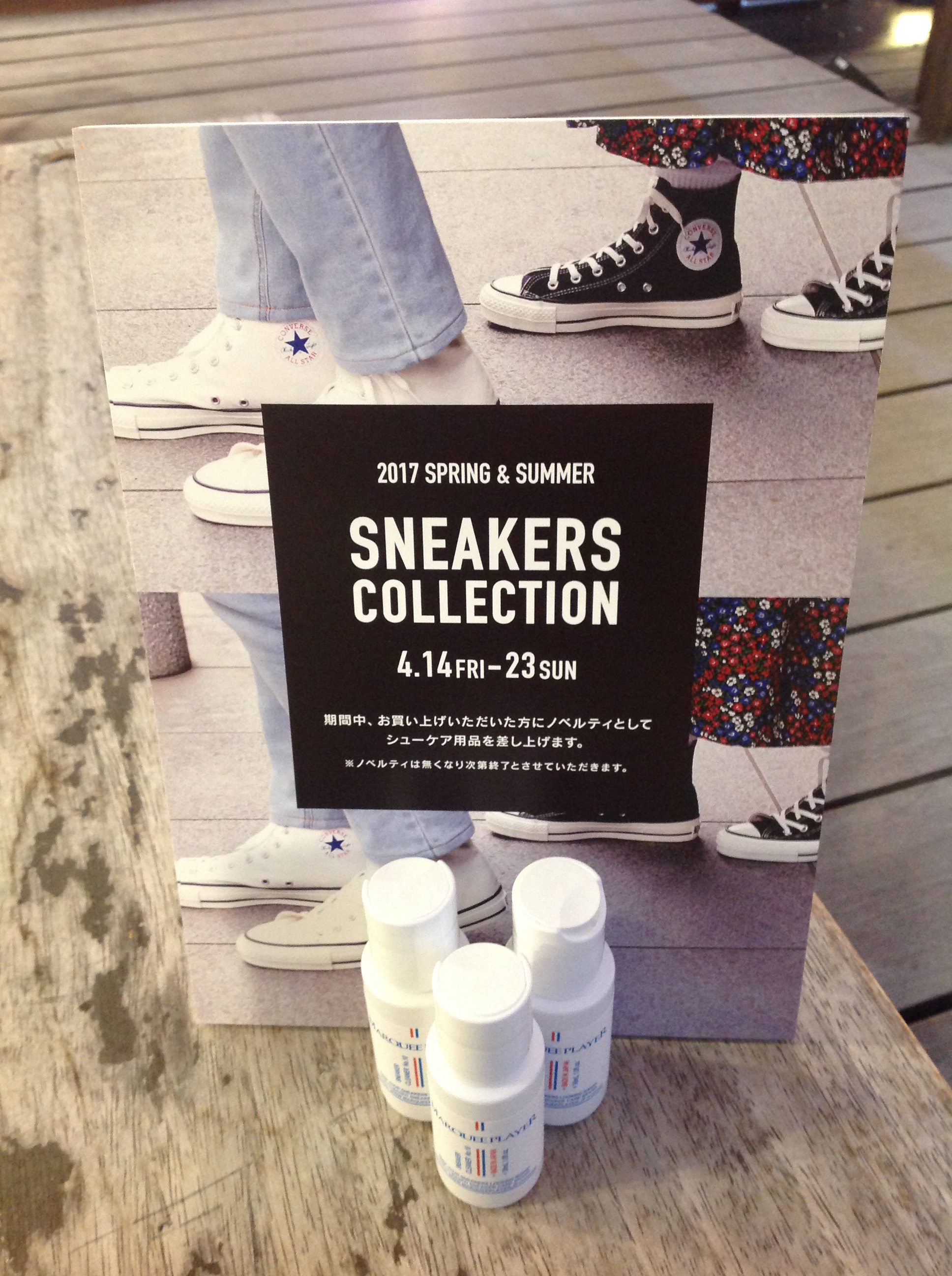 「SNAKERS COLLECTION」 期間中に、スニーカーをお買上頂いた方にノベルティとしてシューケア用品を差し上げます。(ノベルティは無くなり次第終了とさせて頂きます。)