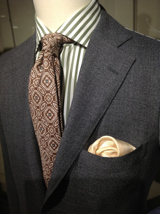 柄もの以外に無地のシンプルなネクタイもございます。 今期一押しのウィンドウ・ペン柄のジャケットとの組み合わせもオススメ。