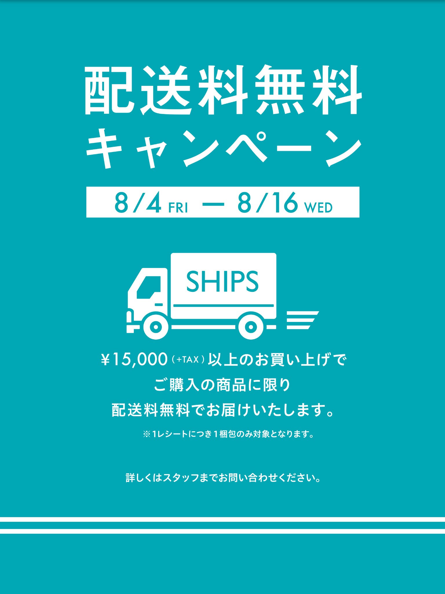 ¥15,000(+TAX)以上のお買い上げで
