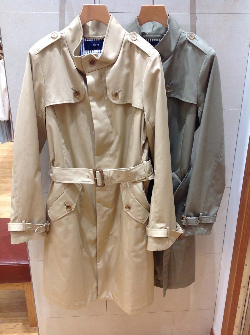 毎年定番で人気のスタンドカラーのトレンチコート。